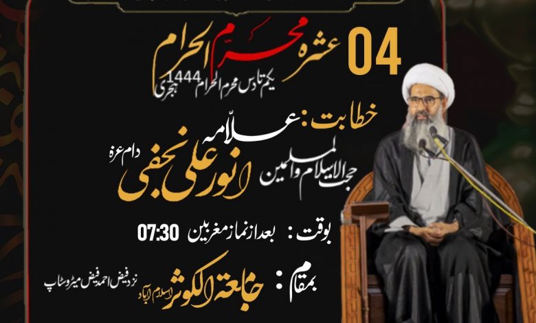 5th Majlis e Aza – Allama Anwar Ali Najafi – Al Kauthar University Islamabad – Ashra e Muharram 1444